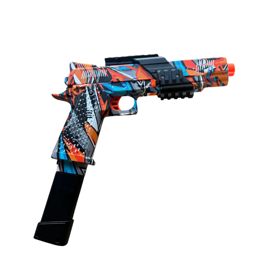 Inspireret af den ikoniske GLOCK-pistol er denne blå gel blaster pistol en favorit blandt vores kunder for sit stilfulde design og ydeevne.