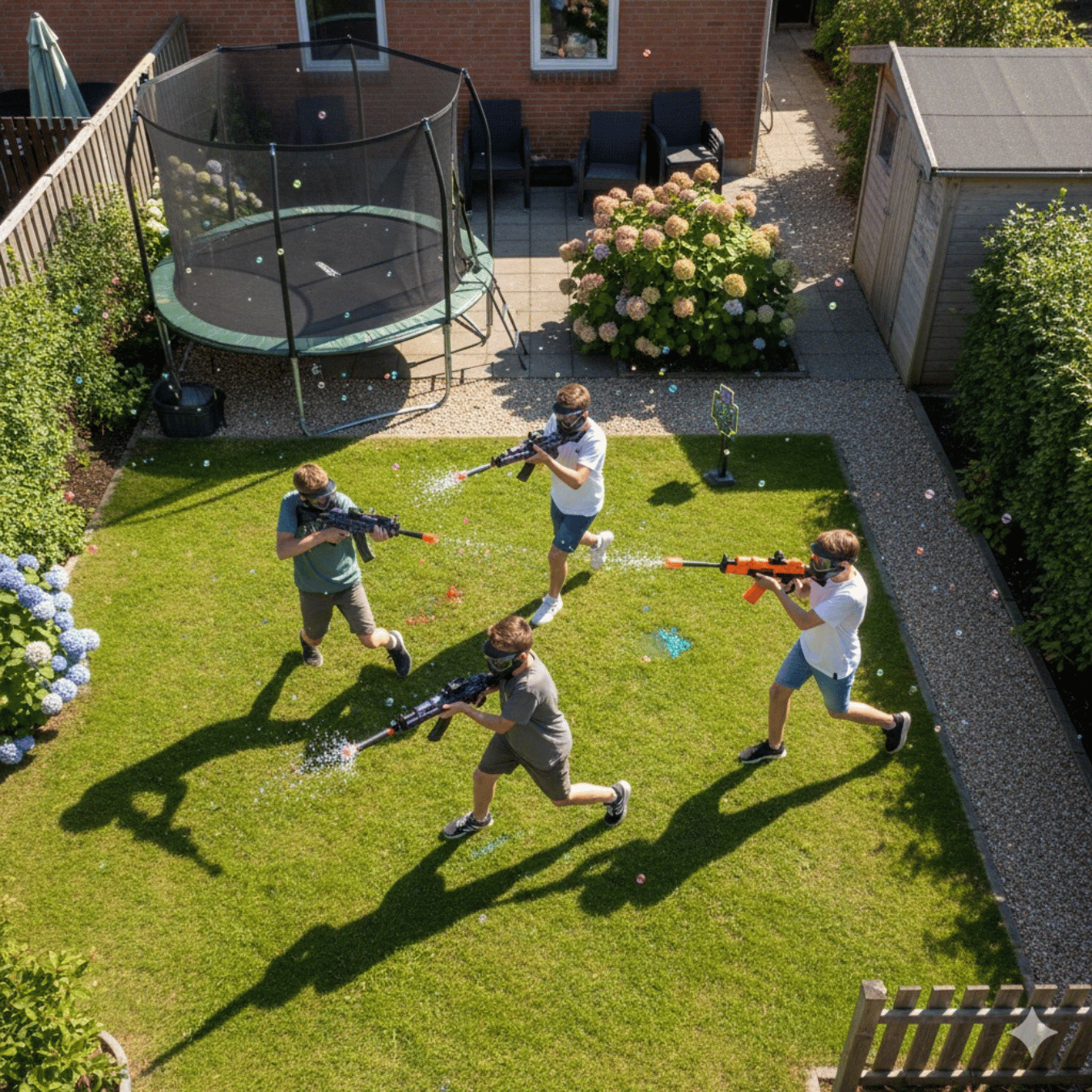 Vores GelBlaster bruger miljĂžvenlige gelkugler, som oplĂžses over tid.