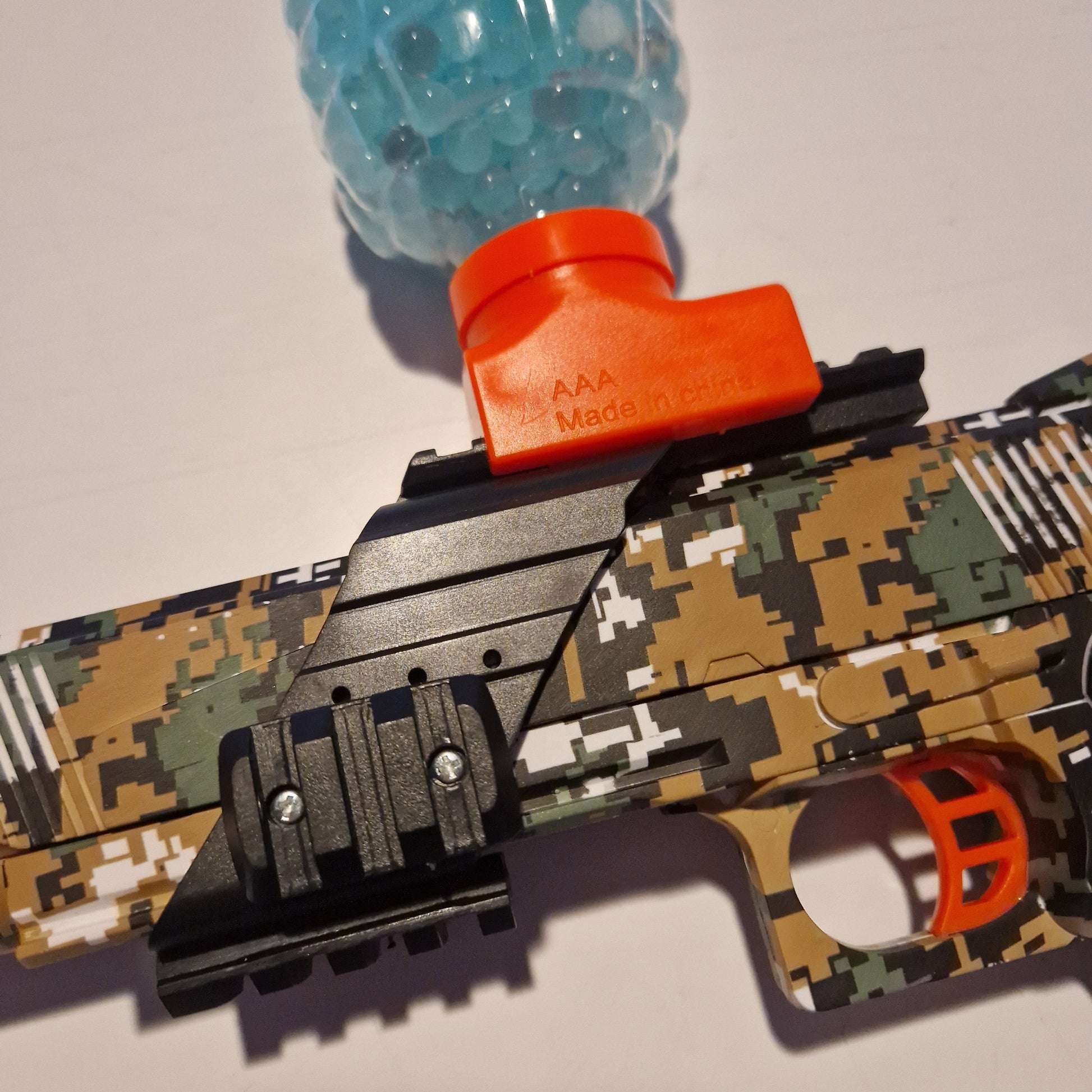 Vores GelBlaster bruger et Downgoing-system, hvilket betyder, at kuglerne føres ned i GelBlasteren, hvilket gør den nemmere at håndtere.