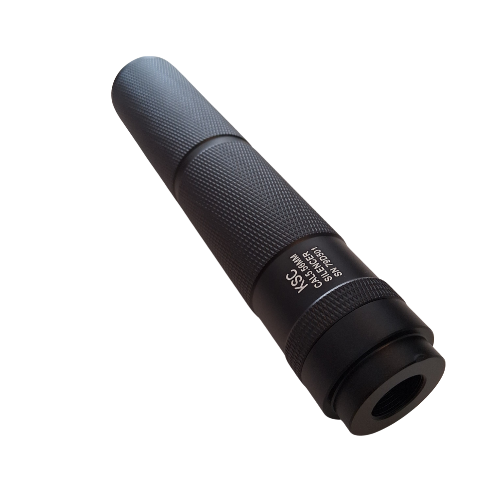 Super lækker lyddæmper fremstillet i aluminium i en simpel konstruktion med et links gevind til at montere på din gelblaster istedet for flammerskjuler.