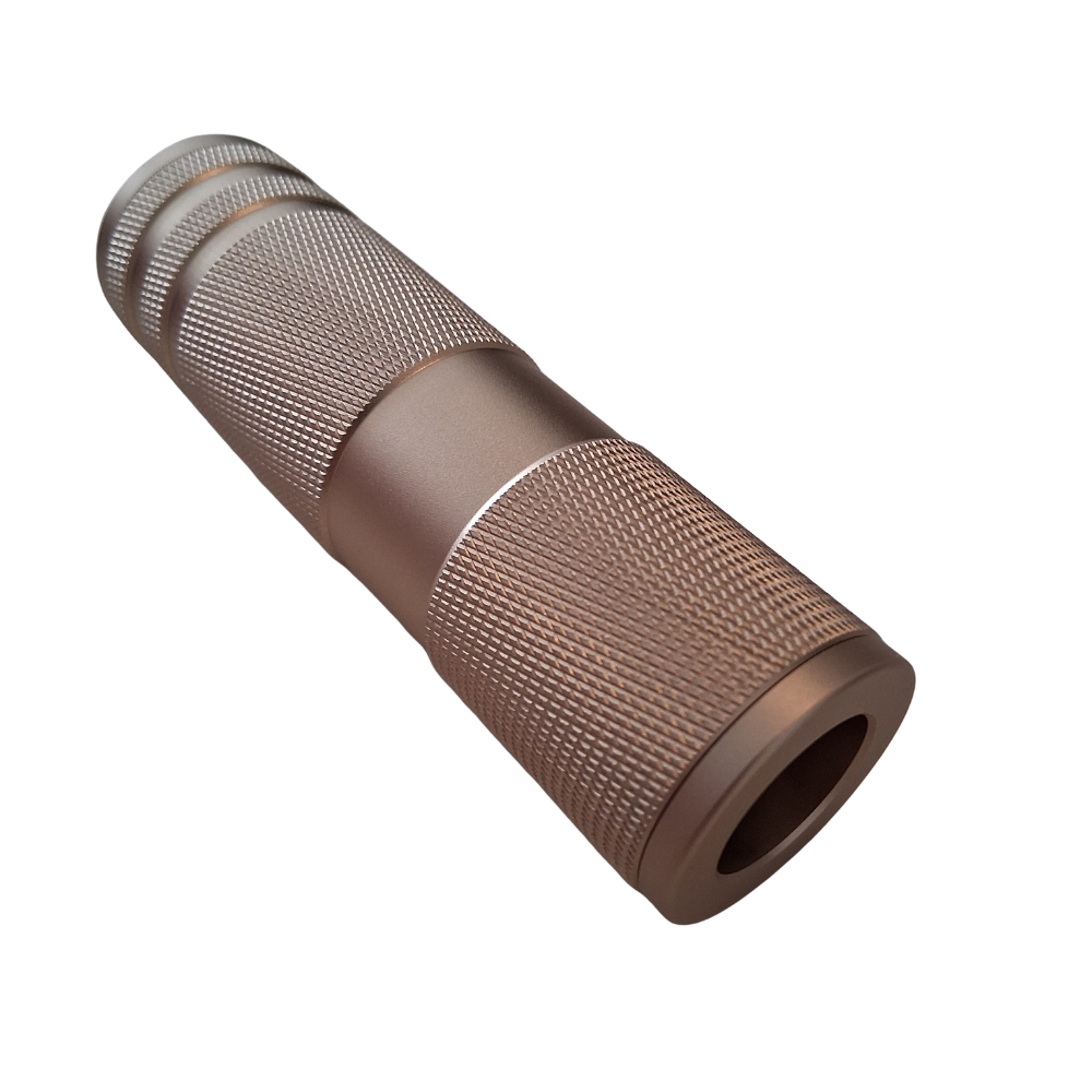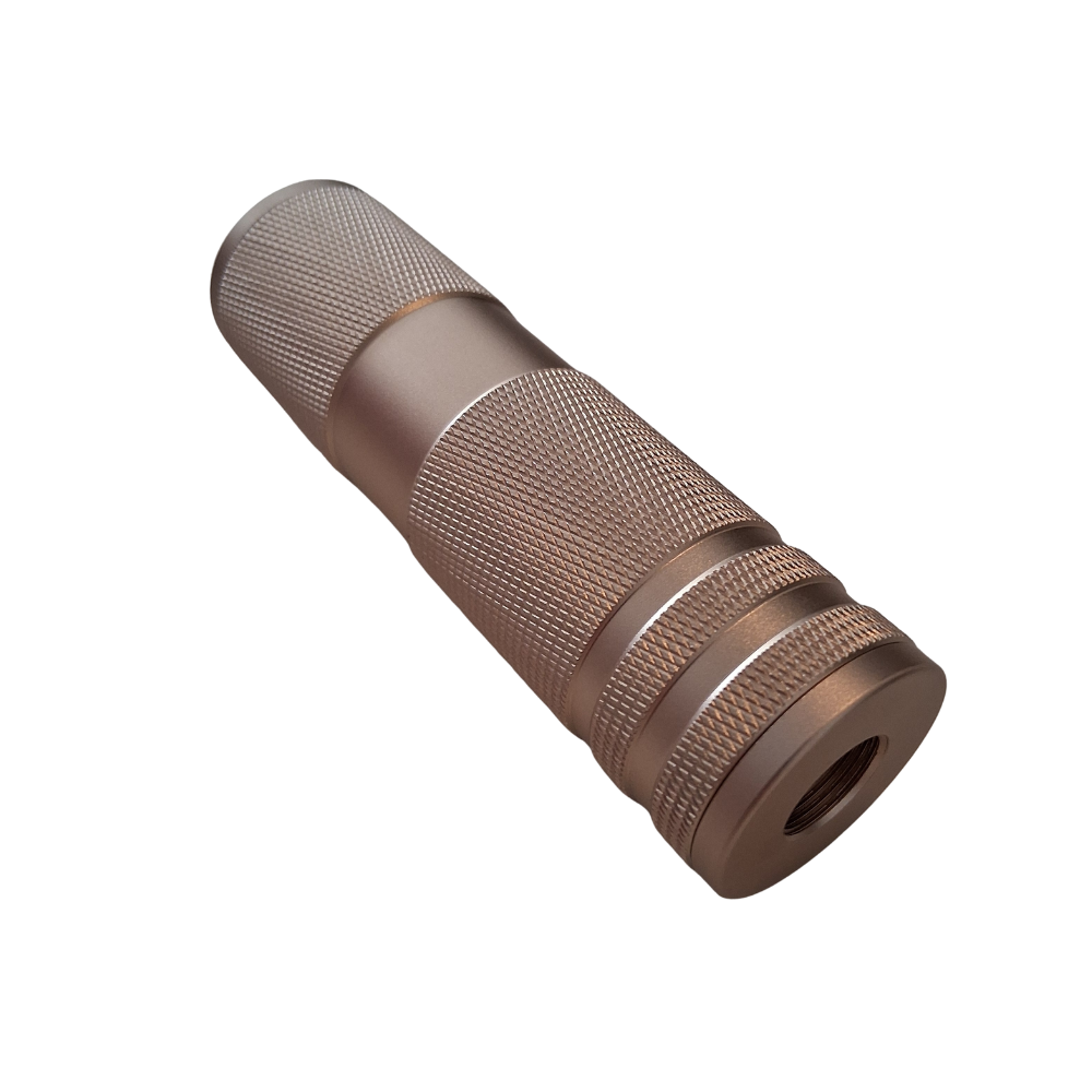 Super lækker lyddæmper fremstillet i aluminium i en simpel konstruktion med et links gevind til at montere på din gelblaster istedet for flammerskjuler.