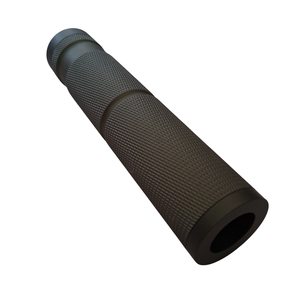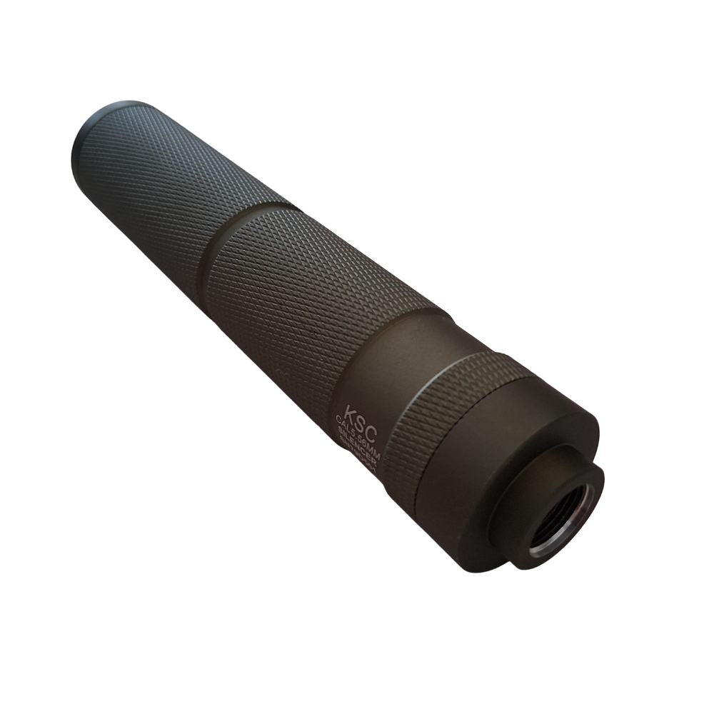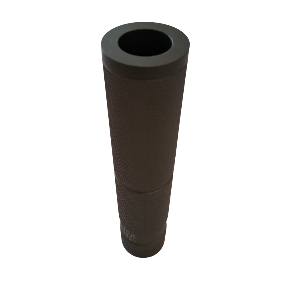 Super lækker lyddæmper fremstillet i aluminium i en simpel konstruktion med et links gevind til at montere på din gelblaster istedet for flammerskjuler.