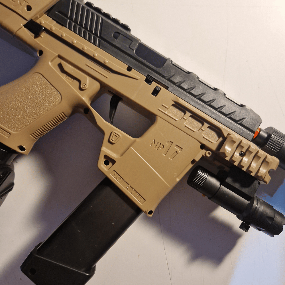 MP17 gelblaster pistolen kombinerer kompakt design med kraftfuld ydeevne. Denne model er perfekt til hurtige reaktioner og tætte kampsituationer. Uanset om du er på jagt efter en pålidelig backup eller en primær sidearm, leverer MP17.
